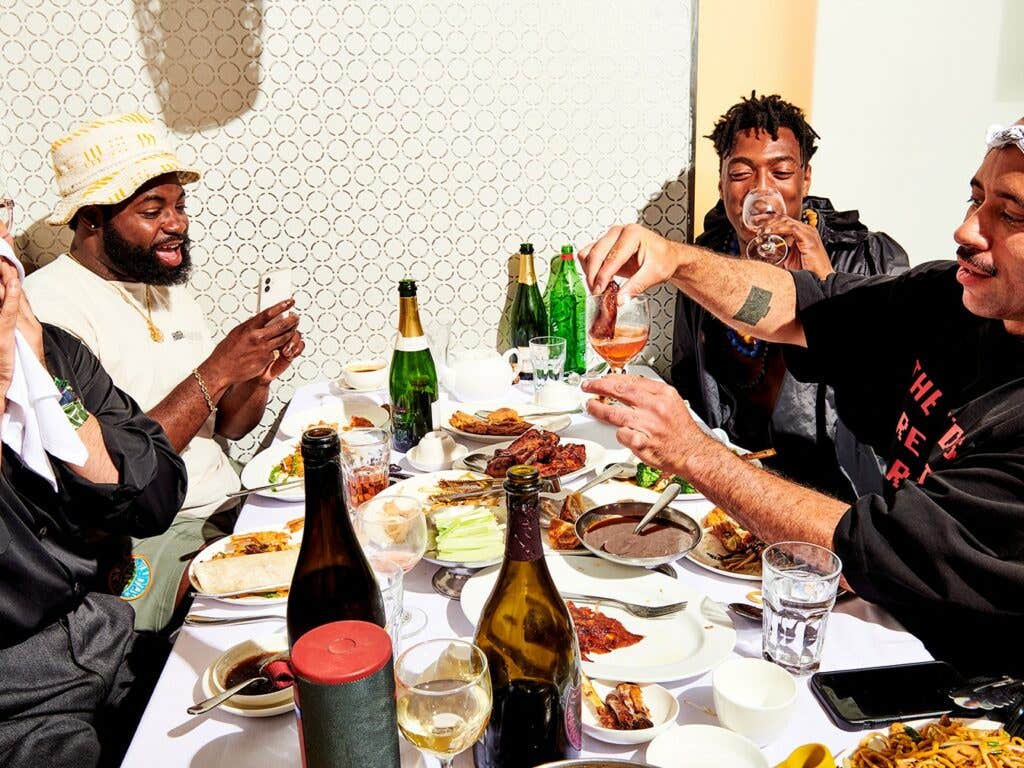 In addition to camaraderie, the Migos find a bit of escapism from the usual buttoned-up (and, at times, elitist) wine scene in their regular lunches. The conversation sometimes turns to the industry’s exclusionary reputation and how the new generation of wine professionals is seeking to reset the tone. “For us, Peking is a way to get out of the formal, often white-dominated spaces where the sharing of beverage knowledge happens,” he says, adding that it’s also about “how we push for change with the currency we have.”