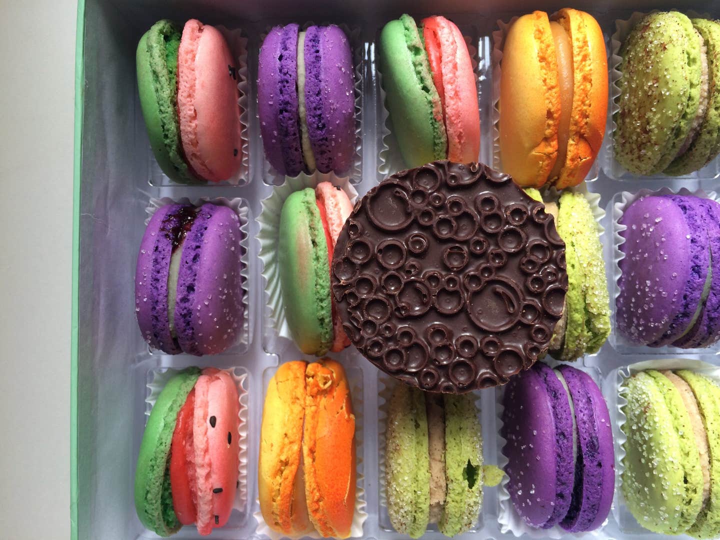 Chef Tariq Hanna from Sucré, a New Orleans bakery, came by the test kitchen to teach us how to make marshmallows. He graciously arrived with treats for the office, including a package for what he called the greatest chocolate macaron. However, when I opened the package I found a chocolate covered patty. Chef Hanna explained that his is an inside-out macaron: The smooth ganache on the outside contrasted perfectly with the chewy almond macaron shell in the middle. Truly, our new favorite sweet treat.