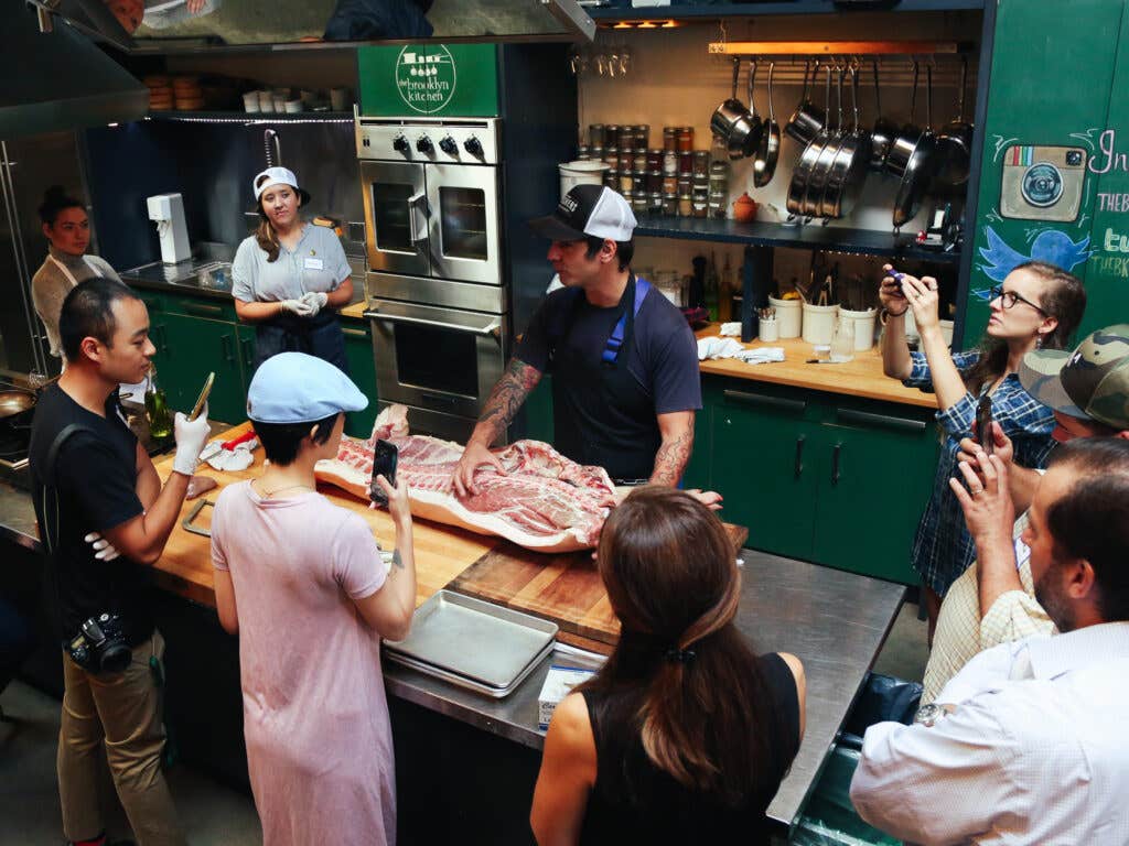 Fleisher's butcher Bryan Mayer gives bloggers a lesson in craft butchery. Michelle Heimerman
