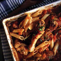 We got this satisfying pasta dish from Justin Smillie, the chef at Smith’s, a restaurant in New York City. For the chunky, woodsy-tasting sauce, he braises artichoke hearts with chicken, dried porcini mushrooms, and fresh tarragon. See the recipe for Fettuccine with Artichokes and Chicken »