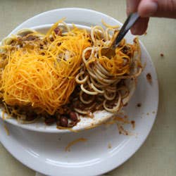 Redolent of warm spices, deeply flavored Cincinnati-style chili, whether prepared two-way (chili over spaghetti), three-way (with cheese), four-way (with onions), or five-way (with a finishing flourish of kidney beans), is an enduring American classic. See the recipe for Cincinnati Chili »