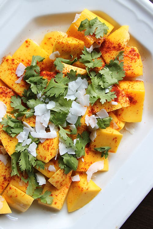 Sweet, juicy, vibrantly colorful, and a little bit messy, mangoes are one of our favorite fruits. Edible at most stages of ripeness, their flavor shifts dramatically as they soften. Whether eaten green in a Thai salad, incorporated into a spicy chutney, or, at their most ripened state, pureed into a sherbet, mangoes deliver a refreshing, tropical brightness across a remarkably broad spectrum of dishes.