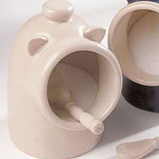 Just when I'd managed to clear some clutter off my kitchen counter (one of those New Year's resolutions destined for failure), along came an item that I decided I absolutely had to keep there. The Salt Piglet from RSVP holds about a half pound of salt in a four-inch-wide, five-inch-tall stoneware container that looks, yes, like a pig (more on that later). The pig is shaped so that moisture and dirt are kept out but you can easily scoop the salt from the "snout" in the front.