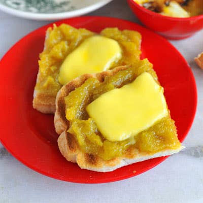I'd read about kaya—a thick, jamlike breakfast spread made from eggs, coconut milk, sugar, and aromatic pandan leaves—before taking a trip to Singapore and Malaysia, and I set out on a quest to find the best version. My conversations with locals led me to Tang House in Malacca, Malaysia, where the region's acclaimed coconut palm sugar adds richness and depth to the simple spread. I sat in the courtyard, drinking Malaysian coffee with condensed milk and eating kaya spread on toast. Hooked on kaya's deep caramel color and sweet, custardy taste, I now make a version at Double Crown, which I use as a tart filling or a flavoring for chocolates. Any way you go, kaya is a simple yet unusual pot of deliciousness. —Brad Farmerie, PUBLIC and Double Crown, New York City