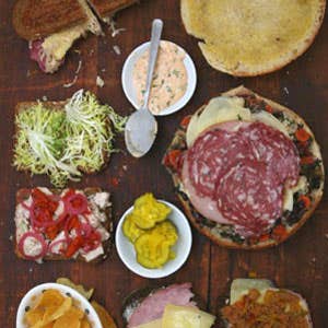 Our all-time favorite may be the MUFFULETTA, an Italian-American New Orleans classic: provolone, mortadella, and soppressata layered inside a round loaf of bread on top of an olive-and-marinated-vegetable relish. Man, is it good.