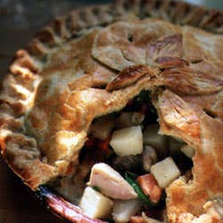 The top crust on a fruit pie, it could be argued, is something of a waste. It's just more dough, concealing the interior; open-topped tarts are both prettier to look at and lighter to the taste. The top crust of a savory pie, on the other hand, is essential: It holds in moisture and, the moment the pastry is breached, releases the aroma in a gush. That's why some French recipes call for sealing a stew pot with a layer of pastry. That's why Paul Bocuse put a pastry dome on the truffle soup he created for a banquet for the president of France. And that's why Chicken Pot Pie—first mentioned by that name in this country in 1792 (the "pot" is the deep dish it's traditionally cooked in)—is one of the great triumphs of old-fashioned American cuisine.