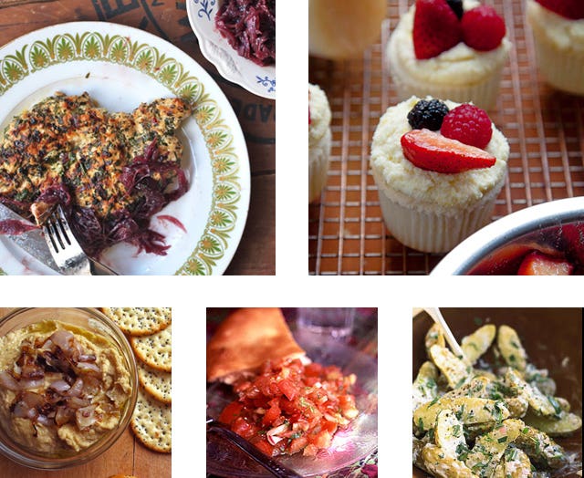 Everything on this menu can be made up to a day in advance, and transported in a cooler. Beware the food danger zone—especially for things like mayonnaise-based potato salad. Use common sense: Bring it chilled, eat it chilled. In lieu of ice packs, which take up unnecessary space, freeze water bottles and then drink them as they melt.