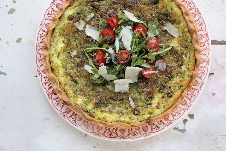 Peppery arugula pesto adds brightness in this creamy, rich quiche.