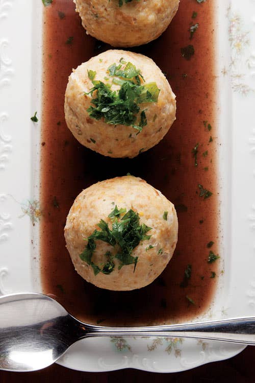 Bavarian home cook Brigitte Drexler's soul-satisfying bread dumplings are great for sopping up the rich pork gravy from the braised roast. This recipe first appeared in our December 2012 issue along with Todd Coleman's story Bavarian Dream.