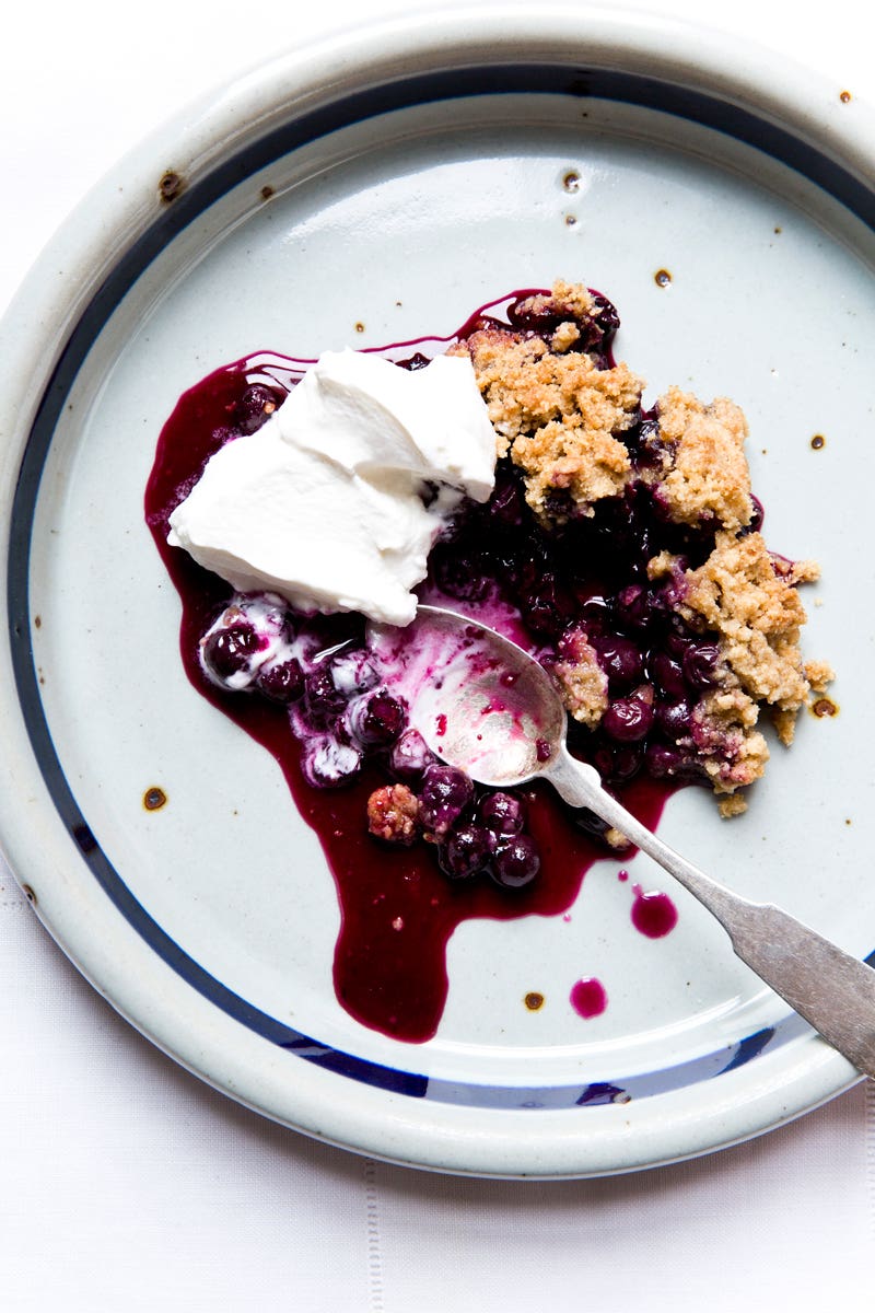 If you are lucky enough to find yourself with an overabundance of blueberries, this easy-to-make crisp is a delicious way to prepare them. It can also be made with peaches, plums, or other summer berries.