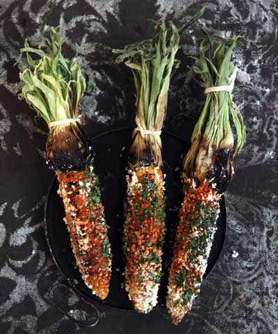 The key to making this Mexican street-food and market-vendor snack is to char the corn on the grill and then brush it with mayonnaise so that the cheese, cilantro, and chile powder adhere to the kernels.