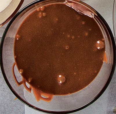 - Mix chocolate, sugar, and salt in a bowl; set aside. Bring cream and powder to a boil in a 1-qt. pan. Remove from heat; pour over chocolate. Let sit for 2 minutes without stirring, then whisk until smooth.
