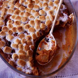 Bake casserole for 20 minutes, then cover with marshmallows and bake until marshmallows are golden, about 5 minutes more. Serve warm.