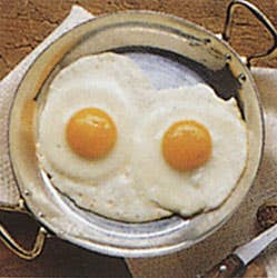 5. OVER EASY: Melt 2 tsps. of butter in a heavy skillet. Crack eggs onto a saucer, then slide them gently into the pan. Reduce heat, then spoon the butter over the whites. Cook for 2-3 minutes. Turn with a spatula and cook for another 30 seconds.