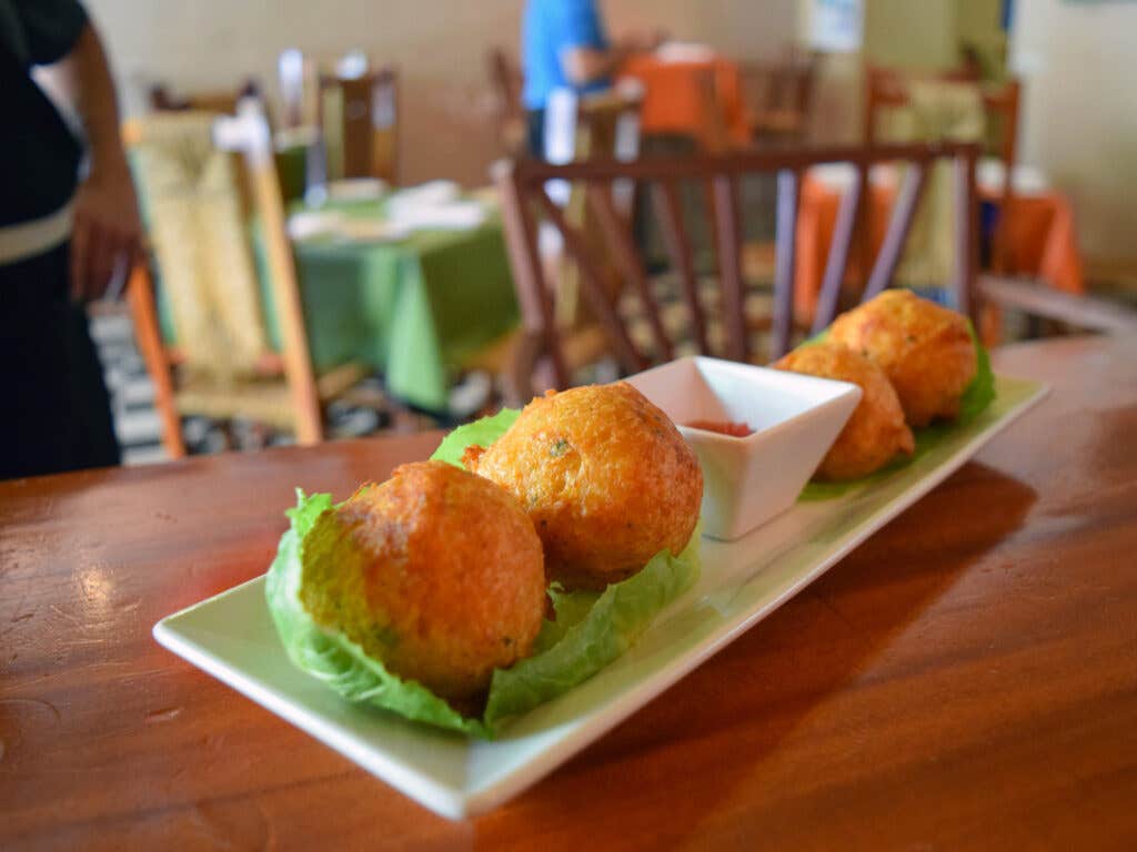 This old school bakery is across the street from where Enrique grew up in Isla Verde, a touristy part of San Juan. With a Spanish slant, the bakery sells freshly baked breads, boiled ham, pork butt, and savory croquettes; you'll be smart to ask for a meat and cheese sandwich, to take advantage of all their offerings at once. There's also a huge assortment of sweet pastries, Enrique's favorite being the famous quesito: puff pastry rolled in sugar with a cream cheese filling. "I could pound twenty of those, easy," Enrique says. Do as he does and grab a few quesitos, paired with freshly squeezed orange, soursop, or tamarind juice, and maybe a sandwich for later.
