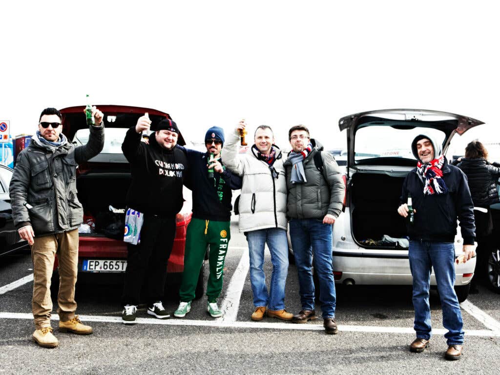 Autogrill number two came an hour later. Its enormous, sterile facade was teeming with throngs of noisy people decked out in football gear; I quickly discovered that this was a pit stop for Bolognese soccer fans fueling up on their way to the game. Tailgaters were everywhere, beers in hand. "A good Italian driver can drive perfectly after drinking beer," boasted a wobbly man, and I hoped he was right.