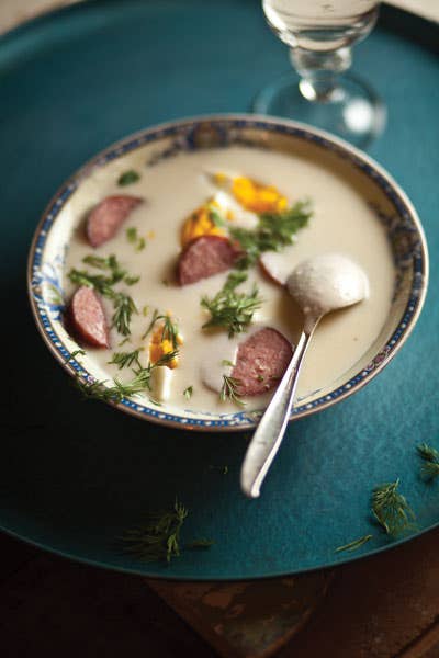 The recipe for this Polish Easter soup calls for fresh horseradish, but it works just as well with the prepared version.