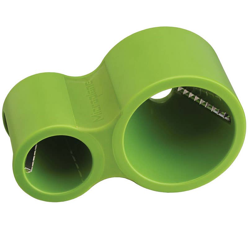 This story begins in the Catskills, where I enjoyed a beautiful plate of raw spaghetti and meatballs at a health spa. The tender strands of pasta were made of zucchini, sliced into long ribbons and tossed with a fresh tomato sauce. Filled with culinary inspiration, I have been passively on the hunt for the tool to recreate the zucchini pasta. Fast forward to Saveur Test Kitchen, where a few of my colleagues were looking at the new Microplane Spiral Cutter with confusion. While they were unsure of what this pencil sharpener-like gadget was for, I had the realization that with two slicing barrels of different sizes, this cutter was for creating spirals of vegetables such as carrots, cucumbers, and of course, zucchini. Though my excitement may havebeen too high for the situation, it was all worth it when I brought the product home to make a rivaling zucchini pasta for dinner. Since then, I have learned that spiral cut vegetables make a great addition to salads and stir-fries, as well as incredibly unique garnishesfor any dish. The microplane Spiral Cutter will provide a new boost to anyone's culinary motivation and plating aesthetics.