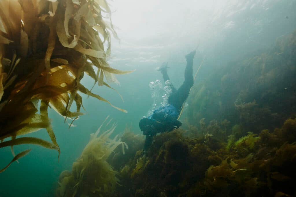 Ashmore is, by trade, a purveyor of seafood, but his true passion is foraging for seaweed. Using an oxygen compressor, he swims for hours through underwater forests where urchins and abalone cling between waving strands of bull kelp. On a good day he'll gather 500 pounds of wakame, kombu, and more exotic seaweeds in his mesh bag.