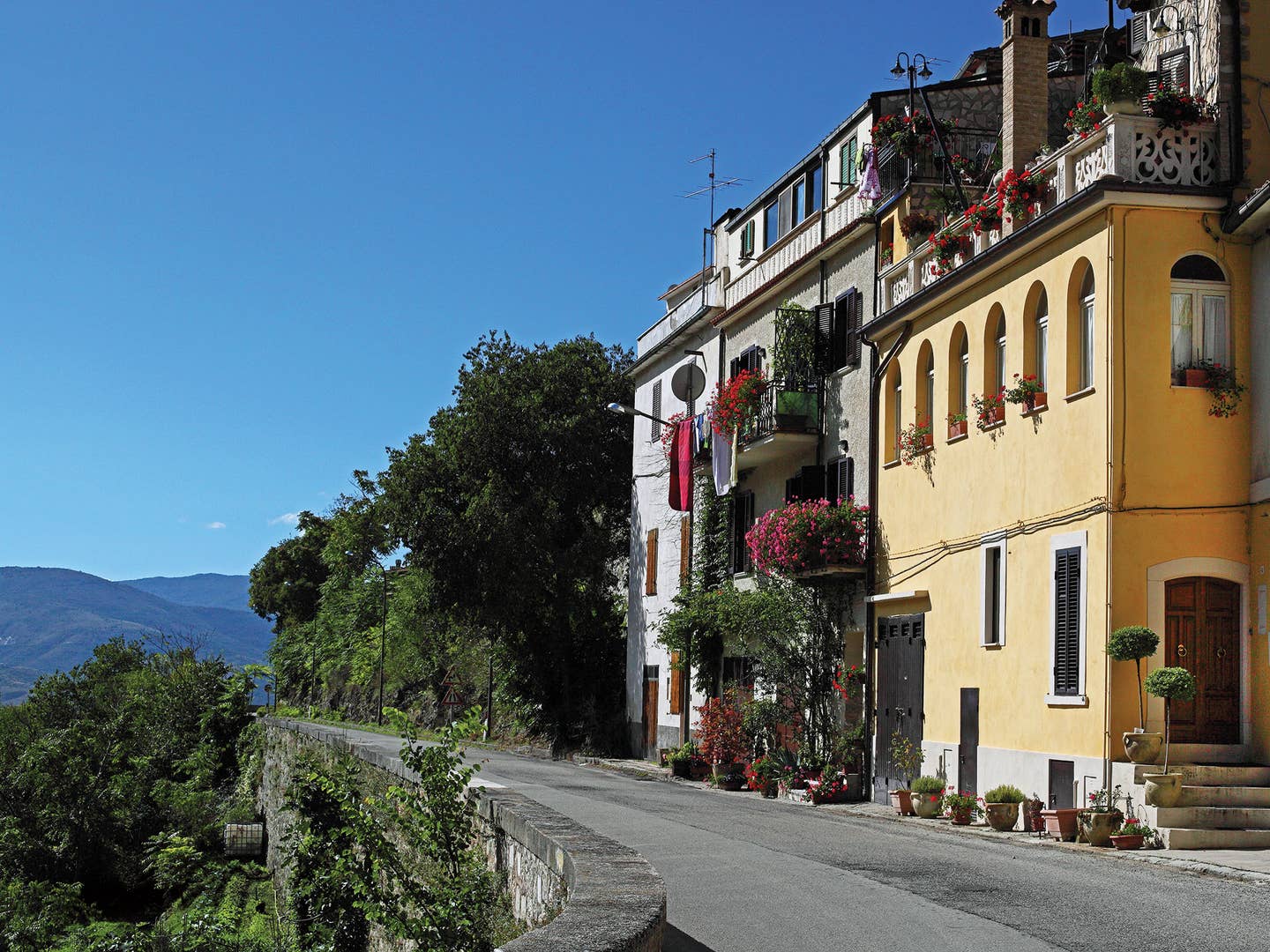 Every so often, a car cautiously serpentines down the winding hillside road away from the ancient hamlet of Ofena, in Italy's Abruzzo region. It's not the sort of drive you rush: Every downward curve opens onto yet another vista of superabundant grandeur. The views here in the Gran Sasso e Monti della Laga National Park are of such unrelenting picturesqueness it seems only right that the roadside benches are turned away from the landscape, toward Ofena's unprepossessing buildings. The locals sitting there appear relieved to be resting their eyes from the ceaselessly breathtaking Apennine postcard unfurling behind them.