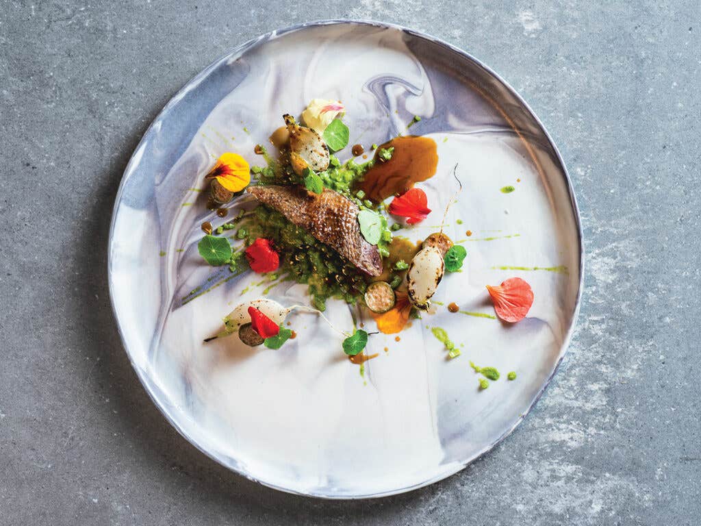 Turning north, you'll pass 8 Mile Road, the highway that composes Detroit's northern boundary, and plunge into the suburb of Ferndale, home of Torino (201 E. 9 Mile Road, Ferndale). It took Detroiters a while to wrap their heads around chef Garrett Lipar's free-spirited, Nordic-influenced cuisine—the distance between coney dogs and fluke topped with pickled mango, corn dust, and micro Cuban oregano indeed seems large. A daily tasting menu features foraged ingredients, highbrow fermentation, and beautiful, fussed-over platings, like a dish of tender grilled and pressure-cooked octopus with braised seaweed, salty scallop chips, and heart-of-palm purée topped with pickled mushrooms. "It's new, and it's not comfort food," says Lipar, a 2015 James Beard nominee for the Rising Star Chef award. "But it tells the story of this region from an angle you probably haven't tasted before."