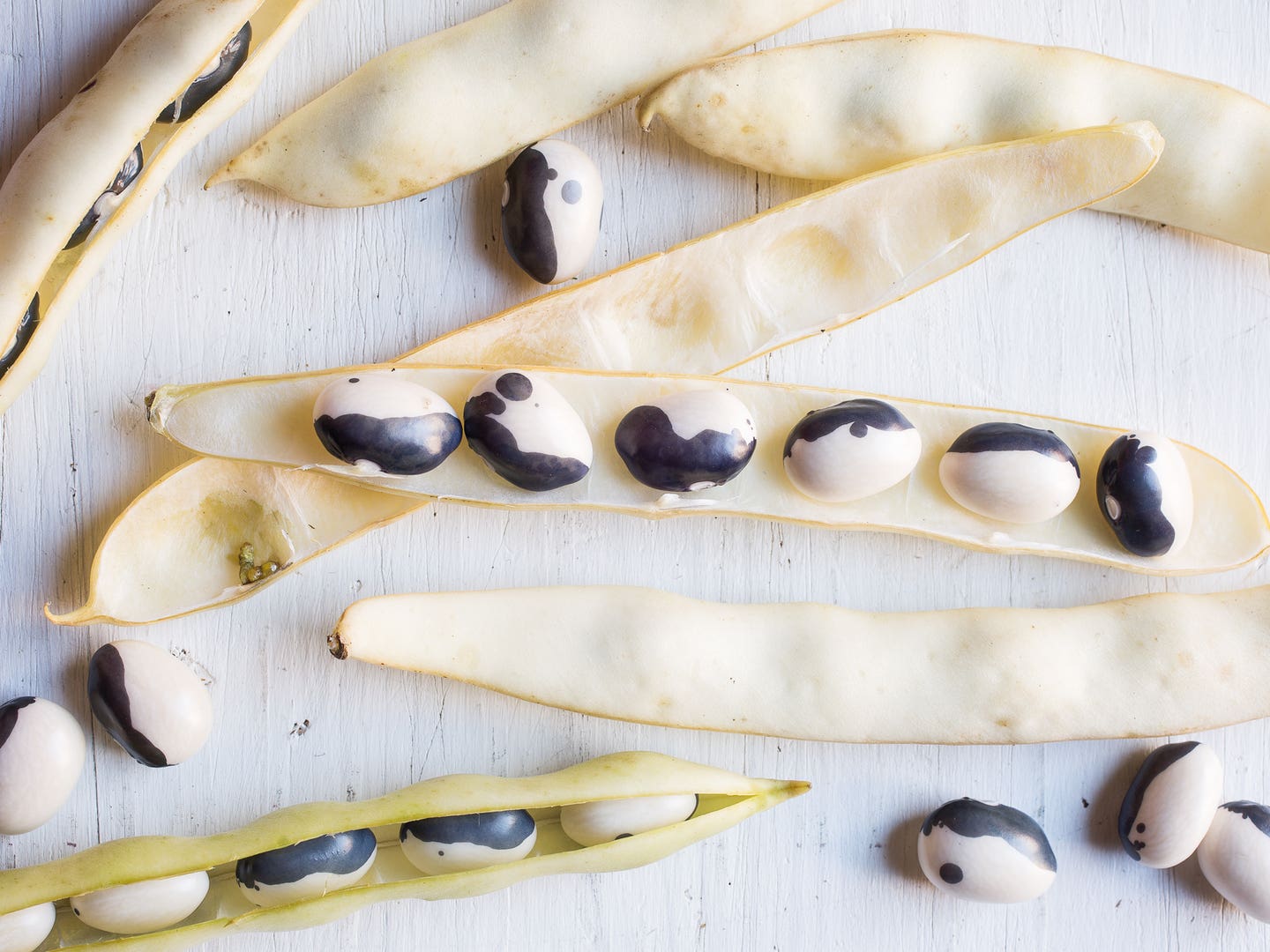A quick overview on the life of a bean: A dried bean is planted in the spring. In the warm moist soil, a tiny but sturdy bean sprout emerges, its leaves unfurling fiercely in a primordial gesture. Warm weather and sunshine cause the bean vines to make flowers, which become little green pods. If allowed to stay on the vine past the green-bean stage to maturity, the beans within the pods become full-size shelling beans. You start seeing many of them at the market in mid to late summer—cranberry beans, butter beans, fresh cannellini, and other types. These cook more quickly than dried beans and have the loveliest creamy texture. But when the pod is left to dry, its contents become wintertime meals and next year's seeds.
