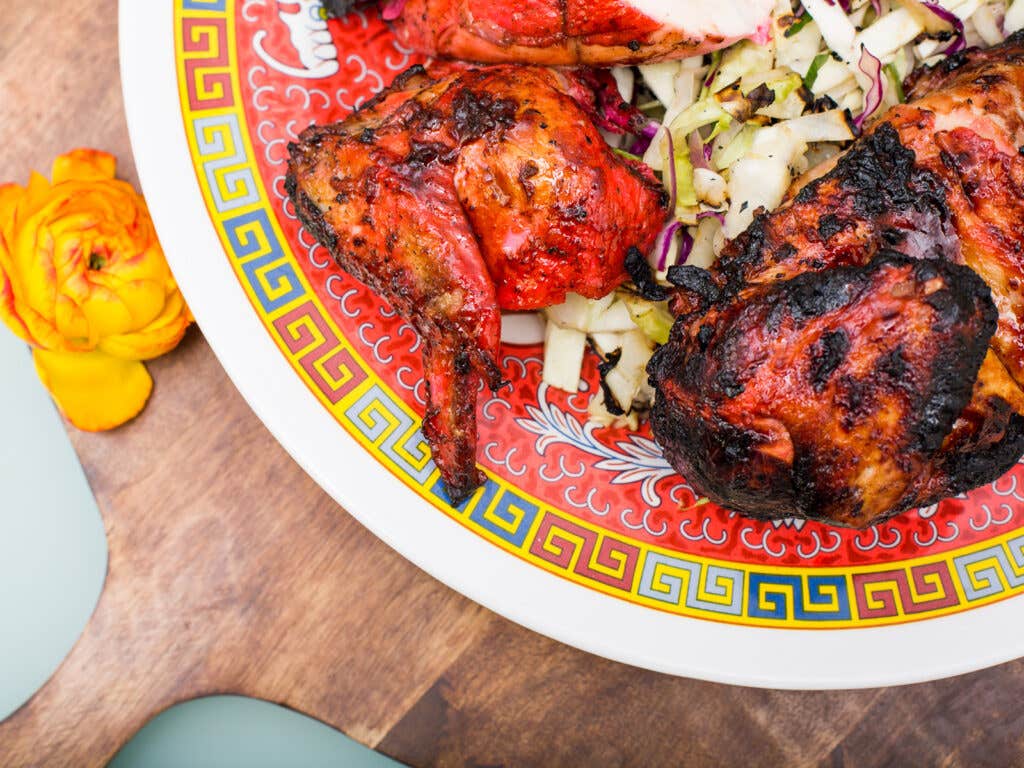 Though the chicken is normally spatchcocked for this smoky Thai specialty, cutting it into serving-sized pieces works well too. Get the recipe for Thai Grilled Chicken with Sweet Chile Sauce (Gai Yahng) »