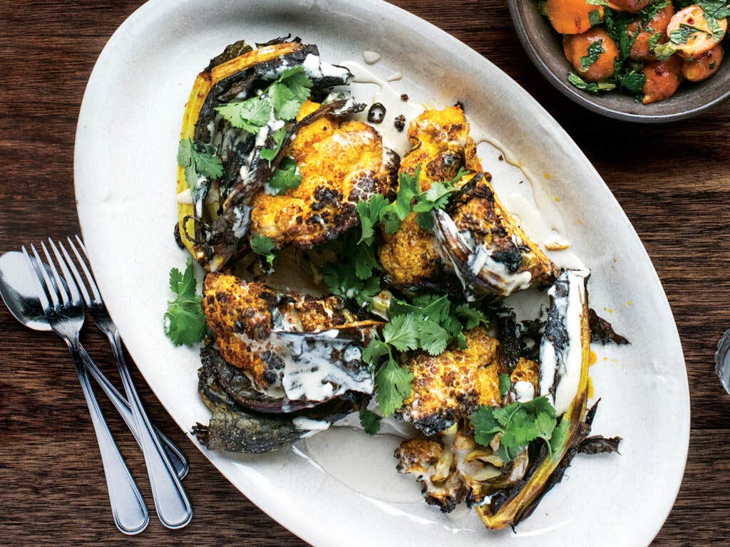 Whole cauliflower is quartered and roasted with paprika, turmeric, and jalapeño in this wintry side dish. Get the recipe for Spicy Roasted Cauliflower with Tahini »
