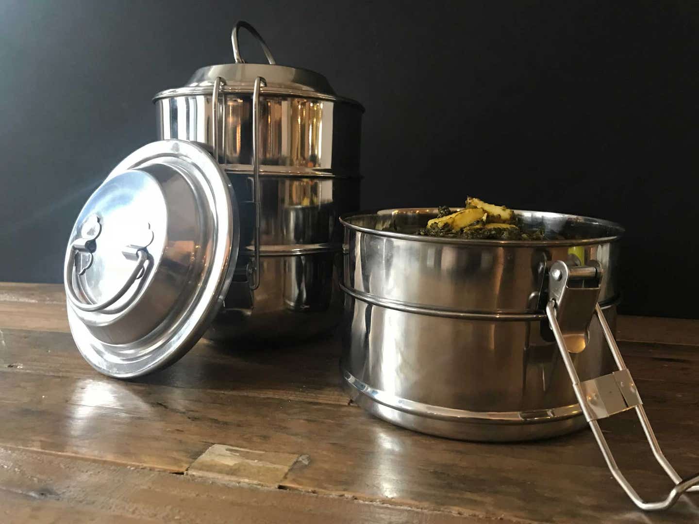 Tiffins are typically associated with Indian city life, though similar styles of layered lunch pails are popular throughout south and southeast Asia, the Middle East, and parts of Europe. They are compact, lightweight, and easy to carry, and the tiered bowls have a generous 3-cup capacity.