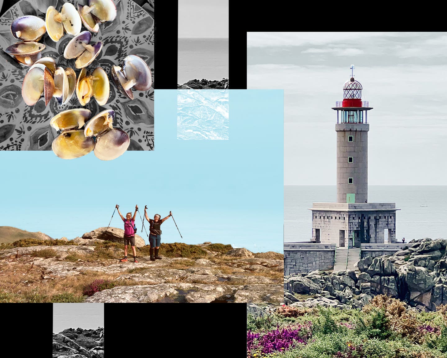 Although the path is named the Way of the Lighthouses, the buildings themselves play a remarkably small role in the route’s landscape and layout. There were days we didn’t see a single one, and others we saw only from a distance. It seemed fitting that our final destination, Faro de Fisterra—Europe’s most visited lighthouse, sitting nearly 470 feet above sea level from it’s highest point—appeared to be just out of range on our last day, no matter how far we walked or how high we climbed. Until it wasn’t. At 5:57 p.m. on that blue July day, we gratefully closed a chapter, placing our hands on the rugged stone cross at the ocean’s edge, worn smooth in sections by the hands of pilgrims and tourists who came before us.