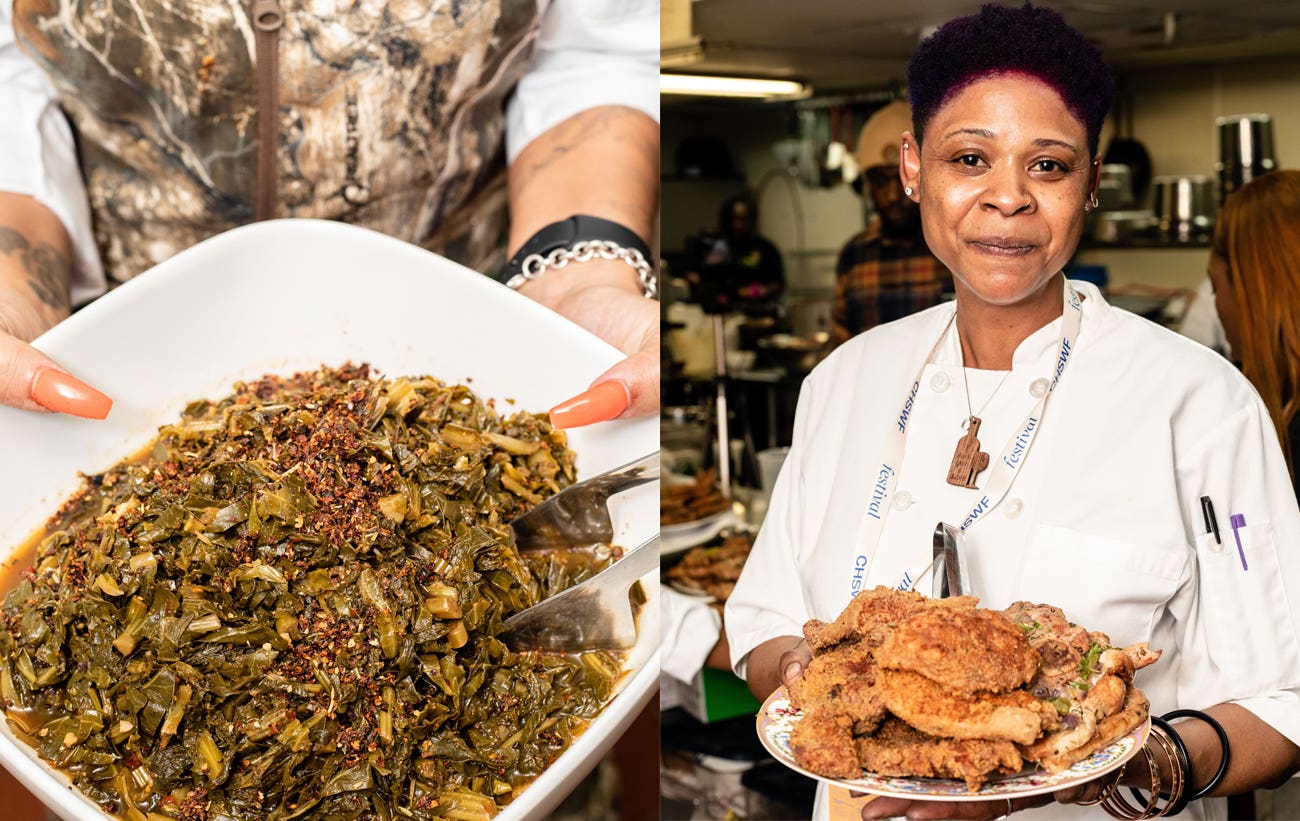 As the afternoon progressed, the beats and laughter amplified, while everyone navigated between hot stations with the grace and ease afforded by old friendships. “Food is a big part of our culture,” said Ganaway. “And it hit me hard when Miss Martha Lou [Gadsden] died, and her restaurant closed down. Even before moving back home I noticed the lack of female representation in the Charleston food scene, and this dinner is about giving Black women the respect they deserve at the end of the day.”