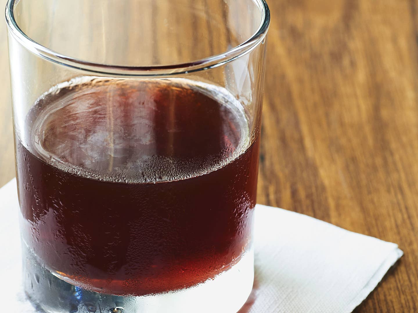 - Combine ingredients in an ice-filled pint glass. Quickly stir and strain into a chilled old-fashioned glass.