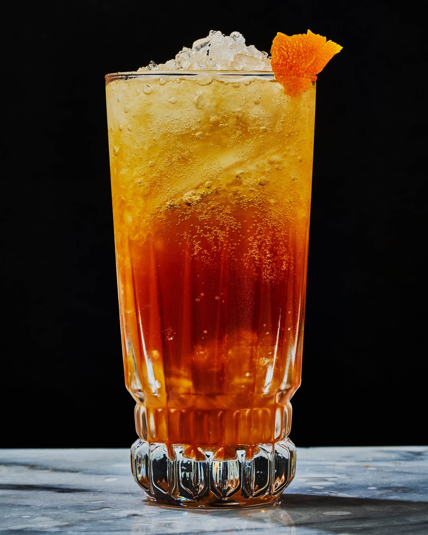 Vermouth, baijiu, and tonic are the winning trifecta behind this cocktail’s acronym. More specifically, sweet Italian vermouth and strong-aroma baijiu are stirred together with fresh lemon juice, simple syrup, and Angostura and orange bitters, and finished with a splash of tonic water and an orange peel. Get the recipe >