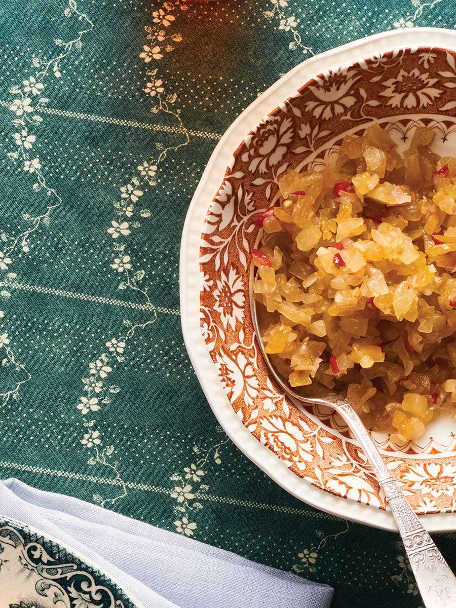 Florence Jackson, the author’s grandmother and a Nova Scotia native, made use of shoulder-season produce to prepare this tangy relish. It is often served with meat and fish dishes, where it adds a bright note of sweetness. While chow-chow can be used immediately, its flavor improves with time. Consider making a large batch and putting it up in properly sterilized canning jars to last through the winter months. Get the recipe for Green Tomato Chow Chow »
