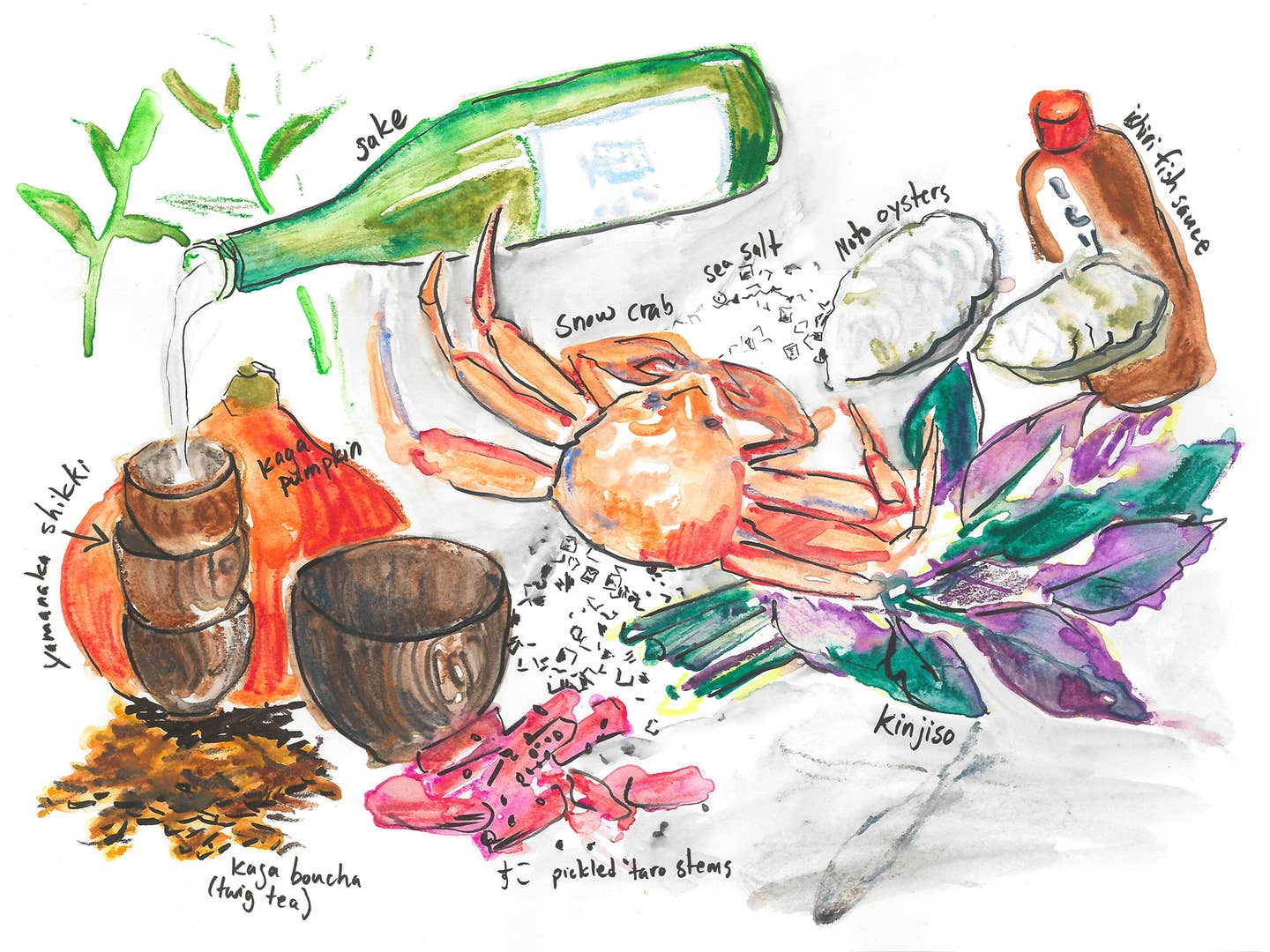If you love Japanese food, you should know about Ishikawa. A few hours away from Tokyo by bullet train, it's a lush coastal prefecture where mountains, and farmland meet the Sea of Japan. Those microclimates produce a bounty of ingredients—sea urchin harvested by ama (a long tradition of female divers), rare herbs and mushrooms from the mountains, rice grown in terraced fields framed by snowy peaks. And shokunin (lifelong craftspeople) transform raw materials into sake, fish sauce, and sophisticated ingredients.