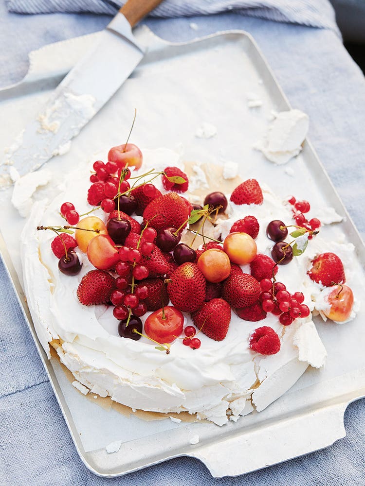 In the summertime I'll decorate a pretty pavlova with a medley of berries or stone fruits. If I can get my hands on passion fruit—its tang and tartness cut beautifully through a pavlova's sweetness—I love to smother everything from the juice to the seeds over the top. Dollops of yogurt whipped cream (a recipe in my book Simple Cake), fruit curd, or a combination of the two is never a bad idea. In the cooler parts of the year, I'll make individual meringues, their batter swirled with chocolate or ground hazelnuts before baking. I'll plop some Nutella or chocolate whipped cream on top and serve chocolate shavings and poached fruit on the side.