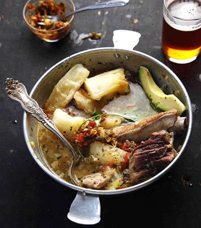 Originally from Spain, this satisfying soup is popular throughout Andalusian-influenced South America and the Phillipines. The Colombian version is made with cassava, beef, chicken, and pork, and often served with avocado and rice on the side.