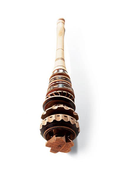 The molinillo is an intricately carved wooden whisk used for mixing and frothing beverages such as hot chocolate. To use, submerge the tool in the liquid while rolling the handle between the palms of your hands. Available at deandeluca.com