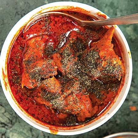 In Kashmir, waza caterers—whose professions are handed down through generations—specialize in the elaborate meal called the wazwaan, undertaken for auspicious occasions such as weddings. Read more about the wazwaan feast in "Perfect Union" by Betsy Andrews »