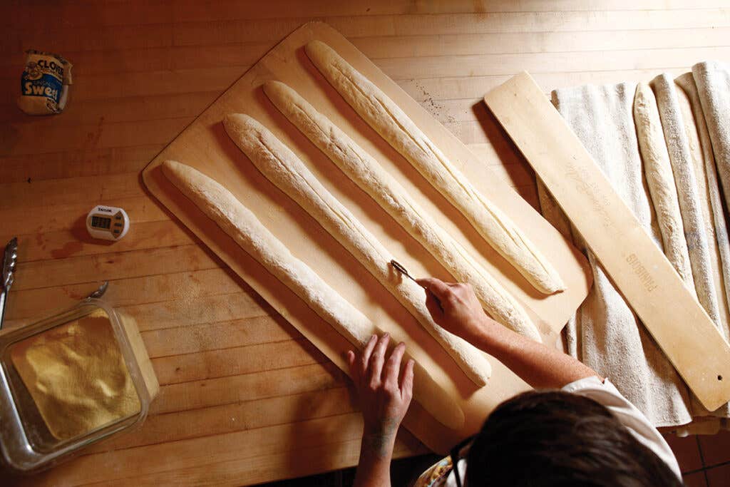 Margaret Smith, co-owner of Twofish Bakery in Sea Ranch, California, is up before the sun to get a head start on the day's baking. By the time the store opens at 8 A.M., Smith and her partner, Hilla, have been working for over 4 hours but that doesn't mean the work stops then. Here's a look at a morning behind-the-scenes at Twofish, originally from the iPad edition of Special Issue #165: A Day of Cooking