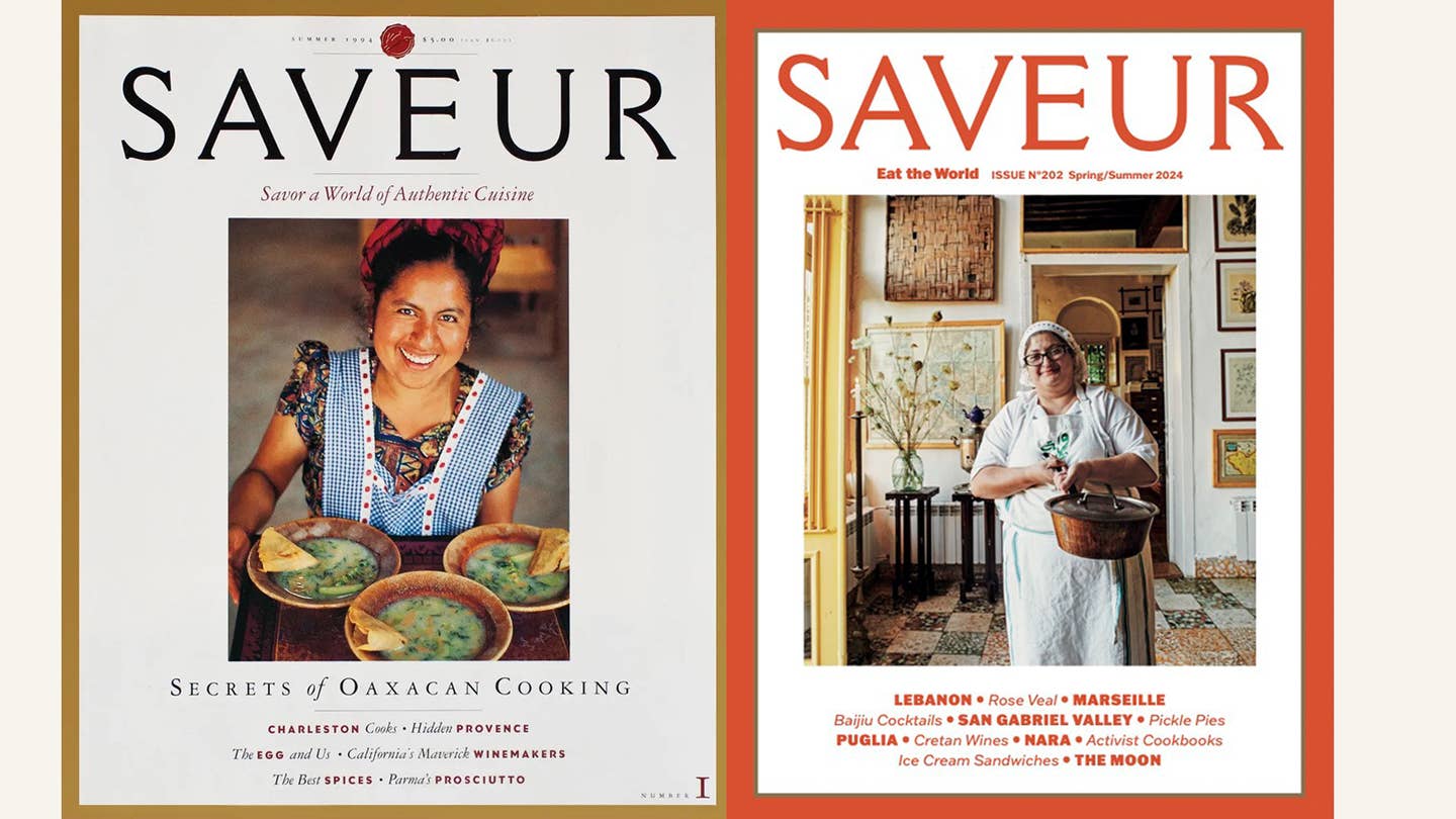 When SAVEUR magazine launched in 1994, its photography and design set the tone for something different. In contrast to the pristine studio photography that was in vogue at the time, SAVEUR’s food was messy and real, reported and photographed in the field around the world. For the cover of the inaugural issue, which enshrined the young Oaxacan cook Rosario Mendoza as our brand’s first figurehead, logos and copy were offset from a heroic and lovingly framed cover portrait. With a more formal look than its peers in food media, this design treatment presented SAVEUR’s subject matter—then largely relegated to the frequently dismissed category of “women’s publications”—with the gravitas and elegance global cuisine deserved.