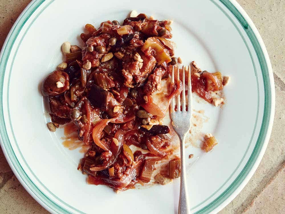 The sweet and sour flavors—or agrodolce—of this caponata come from sugar and vinegar, which have historically been used to preserve Sicilian relishes and are typically included in the island's traditional vegetable and seafood dishes. Get the recipe for Sicilian Caponata »