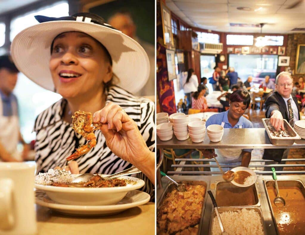 Just as there are many ways to make a gumbo, there are many ways to devour one. It's something I discover at Prejean's in Lafayette, where a young waitress named Kyrie hands me a complimentary demitasse of mustardy potato salad after watching me enjoy my duck and andouille gumbo without it for longer than she can stand. “This is how we eat it here,” she tells me. Adding potato salad to gumbo is a deranged act that pays off in spades. Doing so cools the gumbo down to room temperature and adds a creaminess—a texture sort of like melting ice cream. It's just another example of how far afield this homegrown dish can take you.