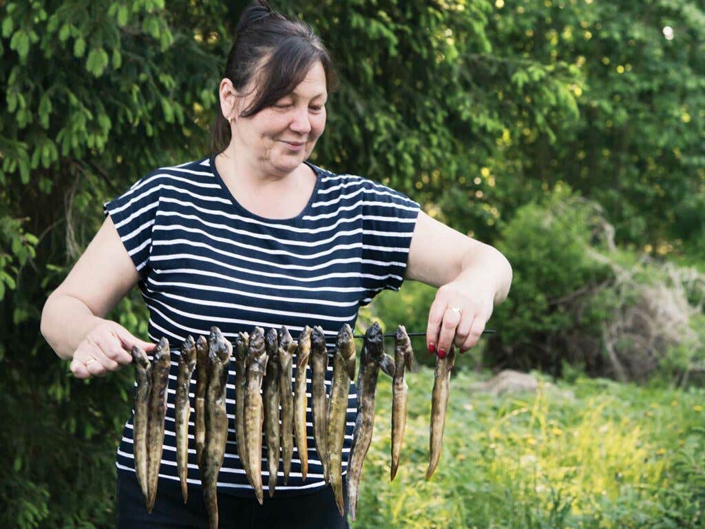 Jānis is sitting on a chair over a bucket, expertly knifing the innards from baby lucīši. Less than a foot long, they have fat heads and full bellies that thin into quill-shaped tails. “In Soviet times,” he says, flipping the fish into a bucket, “only pensioners were allowed to go fishing, but I went out with them early before work and learned from them anyway.” As he and Vija thread the fish onto the metal rods, he explains that the lucīši are smaller than they were years ago. “In Soviet times, they took too many,” Vija says, with an air of both irritability and inevitability. “They gave them all to the fox farms, to make the pelts shinier.” It makes me think: If you’re a conqueror whose aim is to tear apart the cultural fabric of the native population, there’s no better target than a beloved food tradition. The big stuff—collectivizing the economy, shipping landowners off to Siberia—delivers the major, life-changing blows, but messing with harmless seasonal fish celebrations, that’s the insidious fiberglass that really gets under people’s skin.