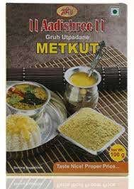 Similar in composition to the lentil powders (see below) that are popular in South India, metkut is a complex blend of grains, lentils and spices that is considered a specialty of the Maharashtrian Brahmin community of western India. Its ingredients include chana dal (split Bengal gram), urad dal (split black gram), small quantities of rice and wheat, coriander seed, cumin seed, red chile powder, mustard seeds, asafoetida and black peppercorns, among other things. "Metkut is used to lightly spike khichdi or rice porridge or add that extra zing to raitas," says cookbook author Saee Koranne-Khandekar. It can even be sprinkled on buttered toast or eaten with fresh chapatis.
