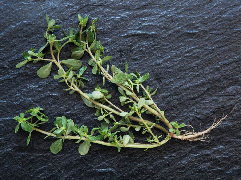 Purslane is a succulent that grows all over the world. It pops up naturally in most organic gardens. In North America it's considered a weed, but in most other countries it's treated as an ingredient. Purslane tastes mildly salty with notes of citrus and has a tart finish. The whole plant is edible—the leaves and stems are equally delicate and crunchy. Look for it during the summer months.