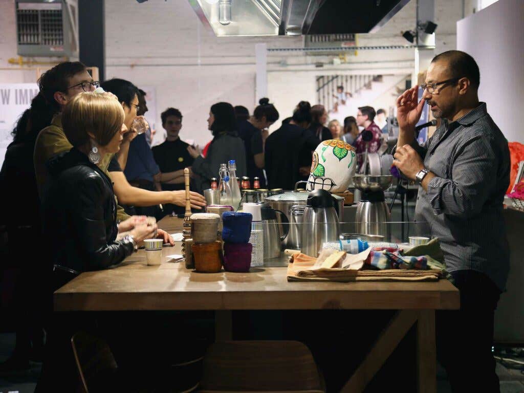 To celebrate the opening, MOFAD hosted a festive Day of the Dead party in conjuction with the Mexican Cultural Institute that included a community altar that guests were encouraged to contribute photos of their deceased loved ones, Mexican hot chocolate from Hernan, bites from Roberto Santibanez's Fonda, pan de muertos from La Newyorkina, mezcal from Peloton de la Muerte, and bubbly from Champagne Taittinger.