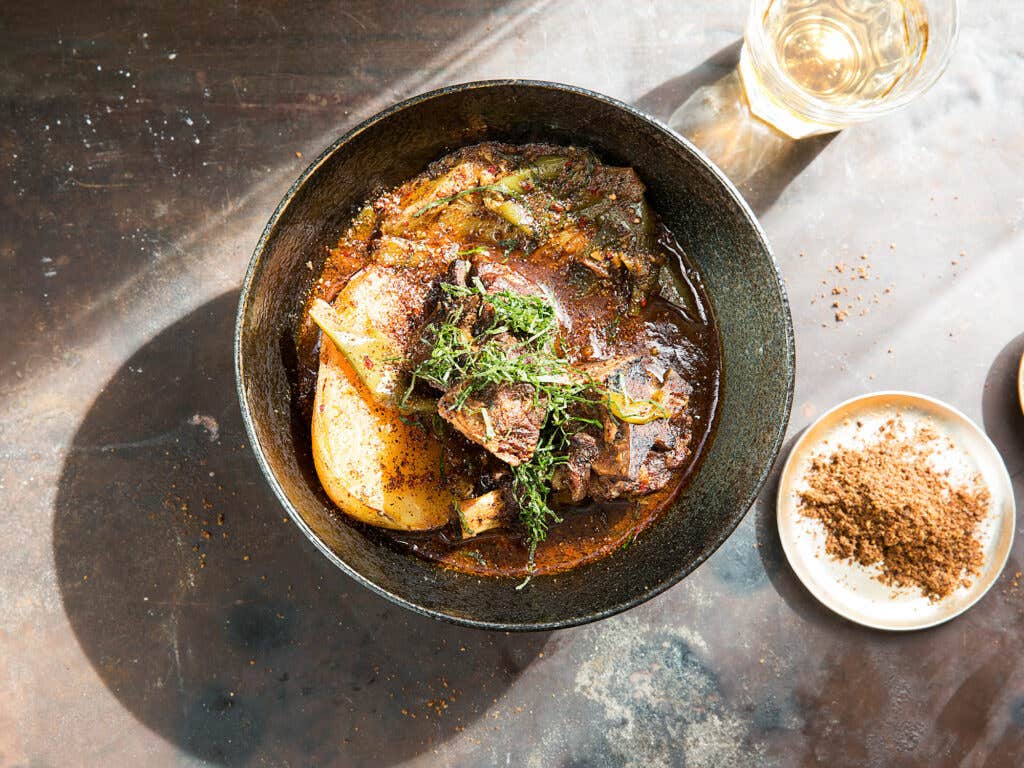 A low and slow braise is the best way to transform tough cuts of meat into fork-tender morsels. This version, made with a crosscut whole beef shank, is cooked in white wine and rich homemade beef bouillon layered with vegetables and aromatics for added complexity. Crunchy roasted radishes and a funky flaxseed, herb, and vinegar relish balance the pot roast's richness with acidity and texture. Get the recipe for The Ultimate Pot Roast »Heami Lee