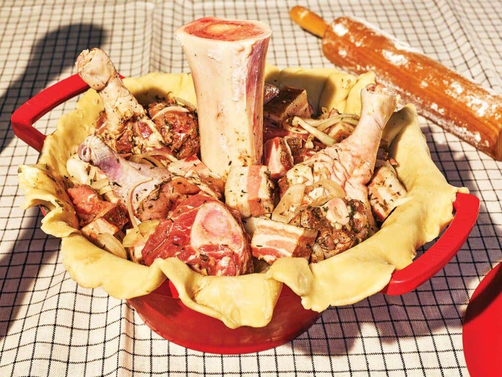 This advanced version of traditional pork pies includes three kinds of pork (shoulder, belly, and slab bacon) and tender chicken for a multi-note meaty flavor, plus savory stuffing. The recipe is inspired by the huntsman pie from the Brantwood Café, a restaurant in Coniston, where it’s served with tangy Westmorland chutney. Our recipe makes small single-serving pies; you will need four 5 3/4-by-3-inch loaf pans, available from Wilton. Get the recipe for Huntsman Pies » Food Styling by Maggie Ruggiero