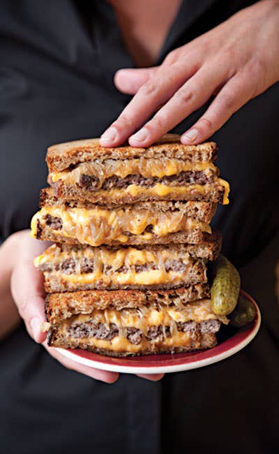 Some say that the patty melt—a griddled sandwich of ground beef, caramelized onions, cheese, and rye bread—isn't technically a burger, because it has no bun. We love it just the same. Get the recipe for Patty Melt »